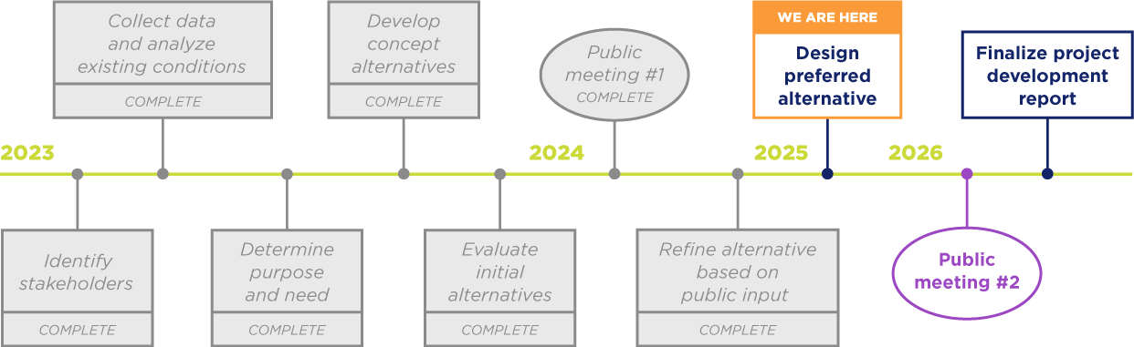 The project team will develop the proposed improvements based on public input and examine the potential benefits and effects that the proposed improvements will have on the community and the surrounding environment.